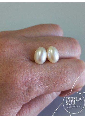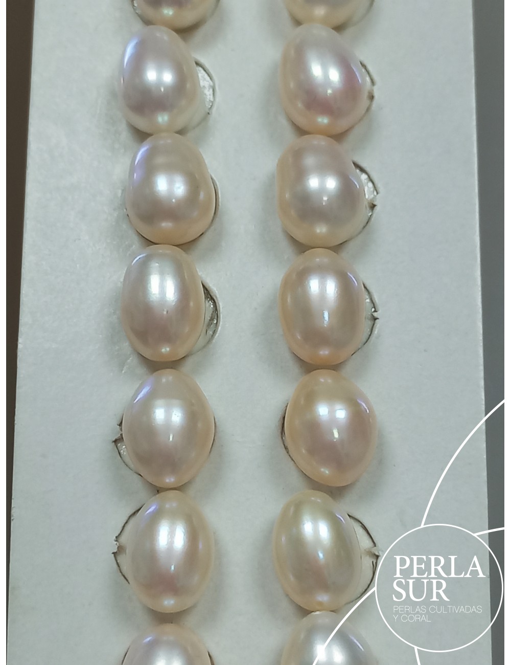 Pareja de perla cultivada de agua dulce con forma oval perilla.