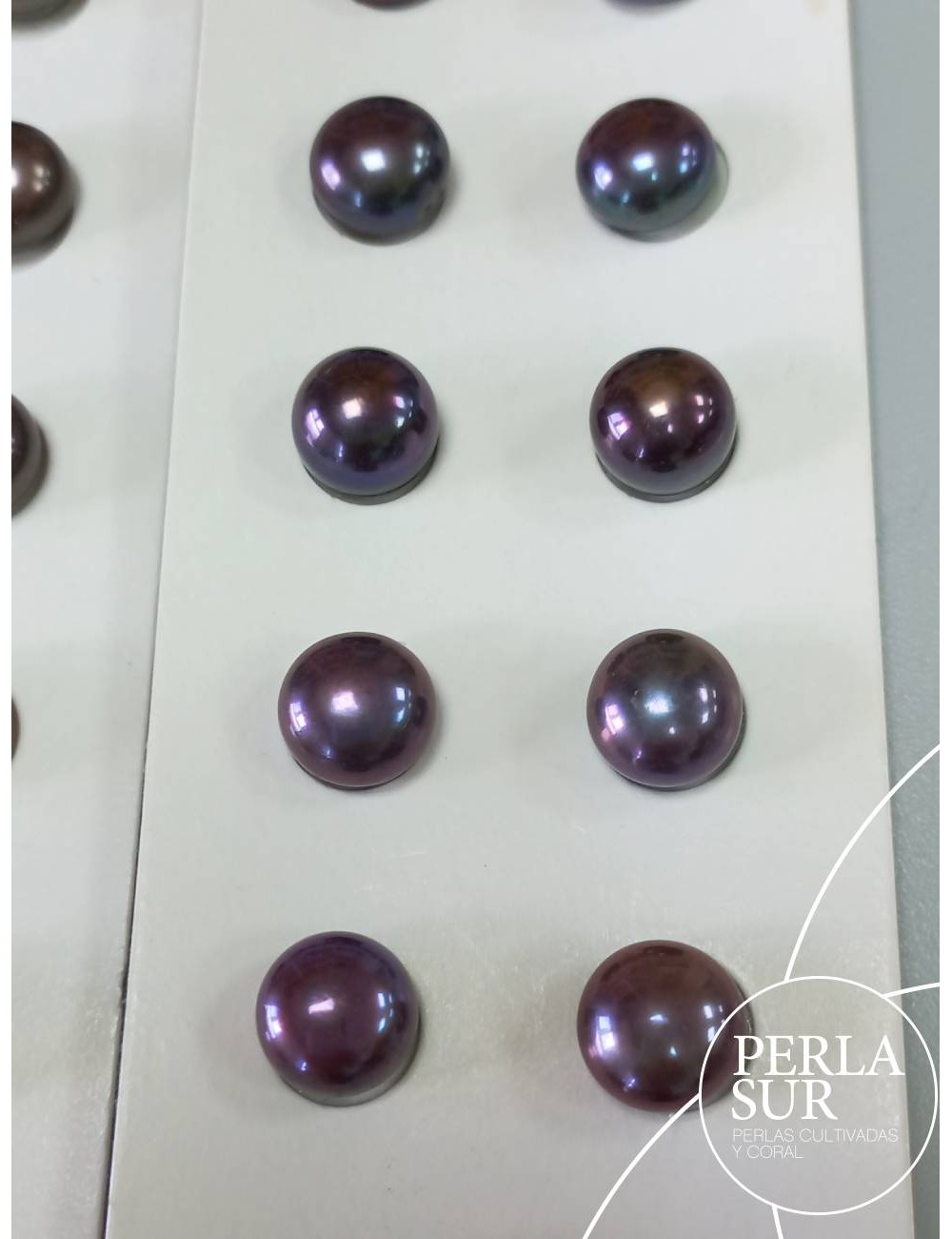 Pareja Perla Botón 10-10´5mm tono azulado. Tiene medio taladro en la parte posterior.