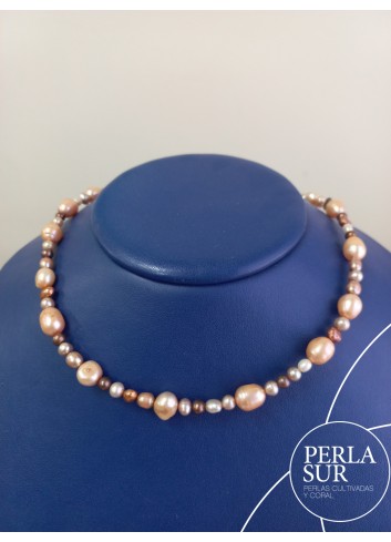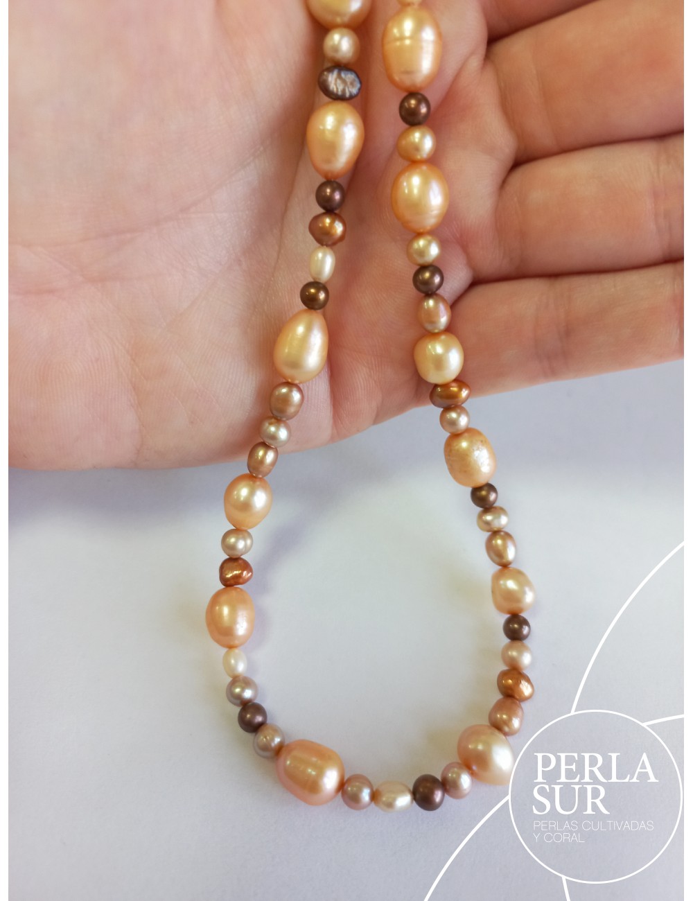 Hilo de perlas cultivadas de agua dulce barrocas 5 a 8mm de diámetro de colores otoñales.