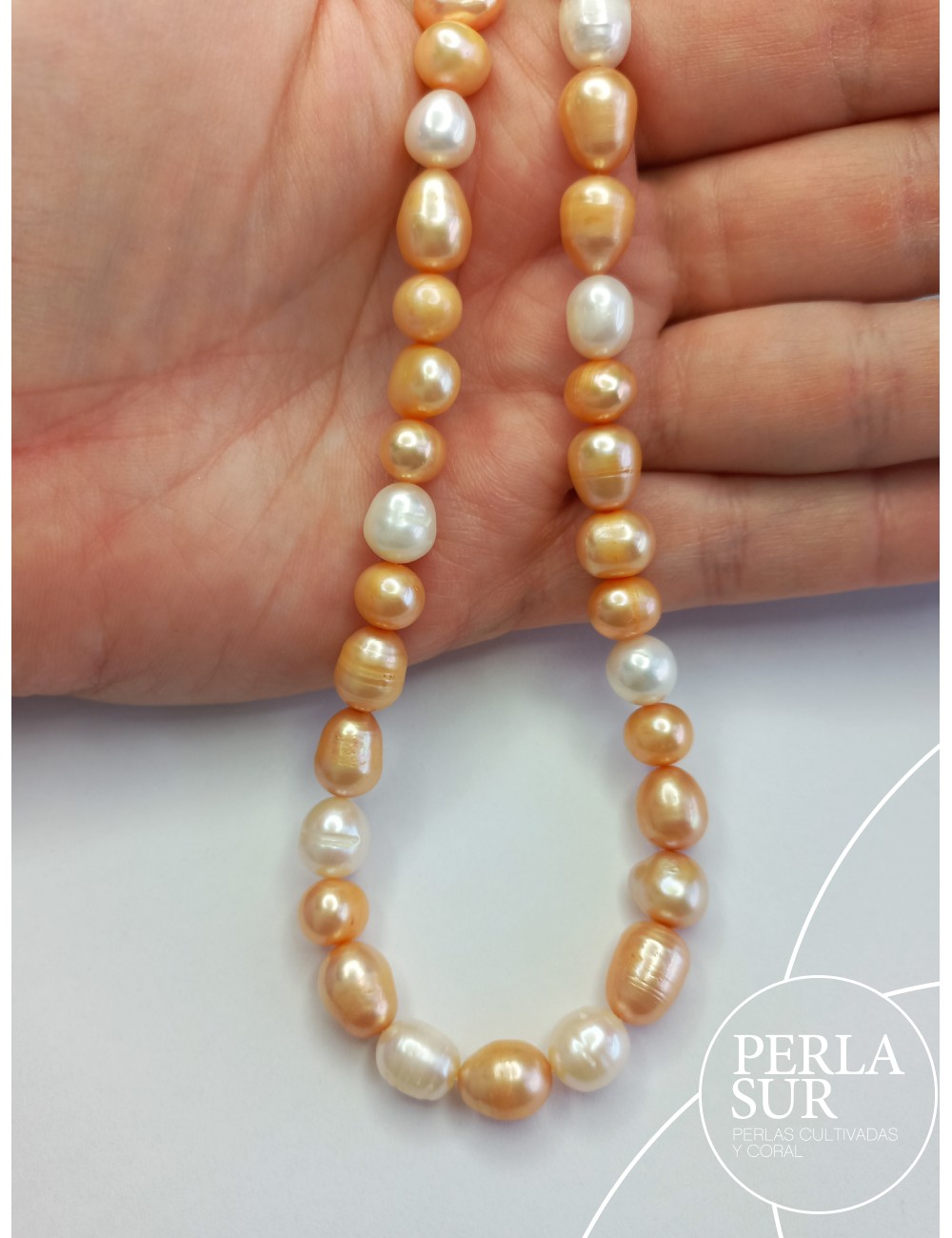 Hilo de perlas cultivadas de agua dulce barrocas 8mm de diámetro, de colores otoñales.