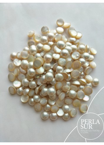 Perla Mabe o japonesa. Precio por unidad. Sin taladro. Superficie lisa y tonos grisáceos.