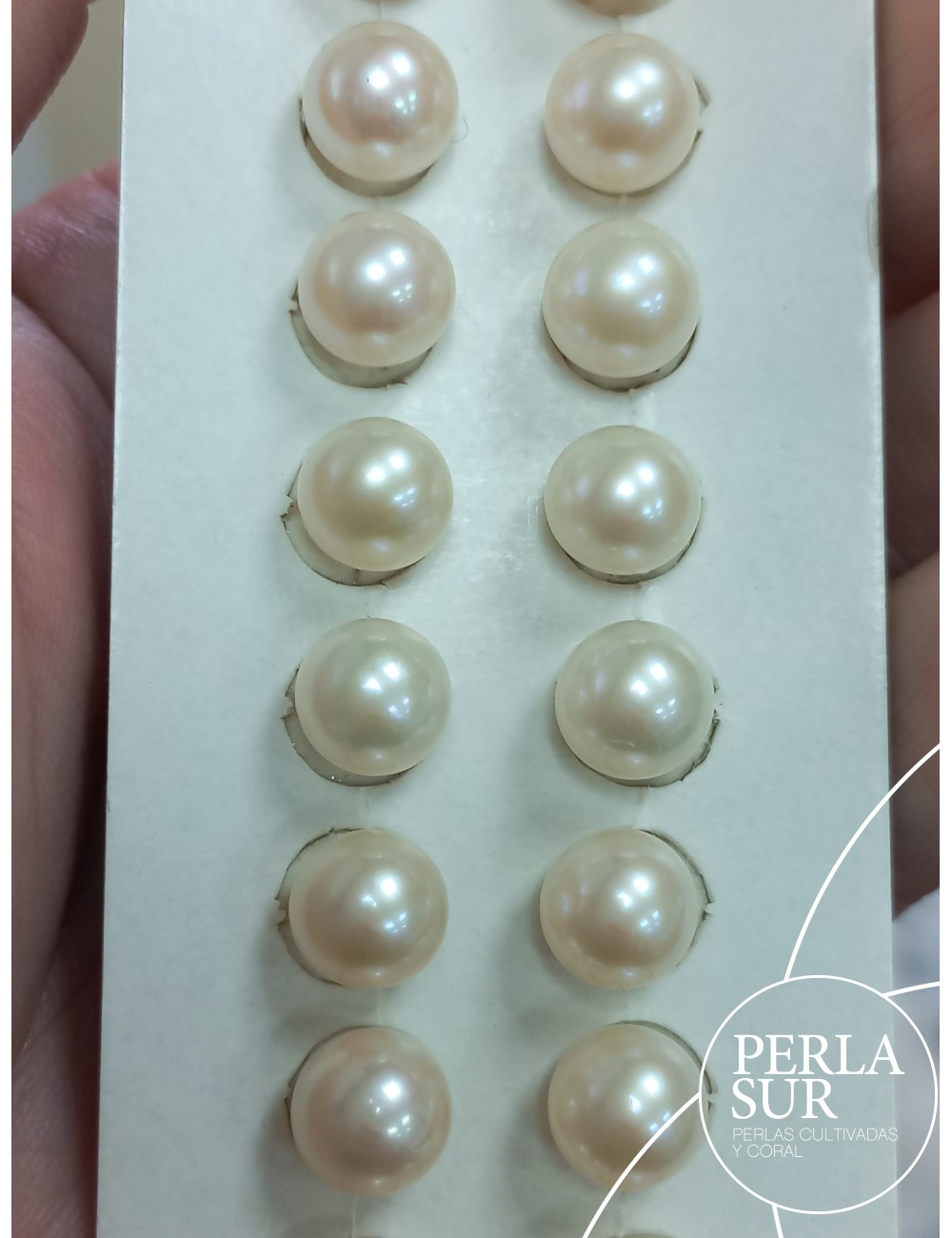 Parejas de perla esférica con medio taladro. Tono blanco.