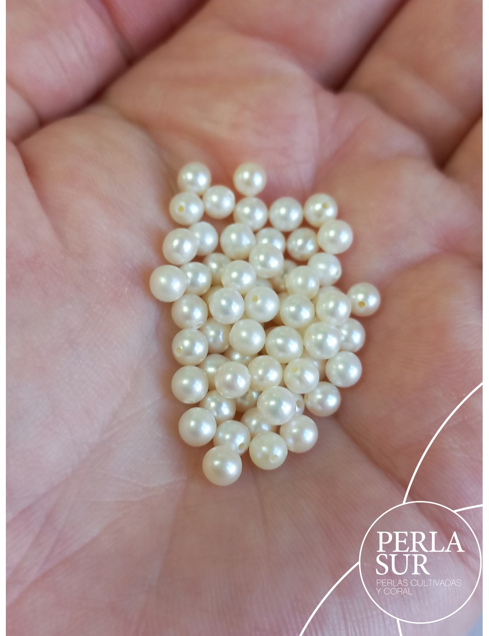 Perla esférica blanca 3´5-4 mm con medio taladro.