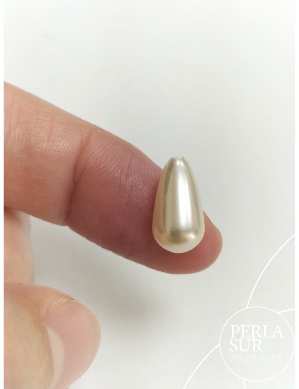 Perlas de imitación. Tono crema champagne. Perilla o lágrima con medio taladro.