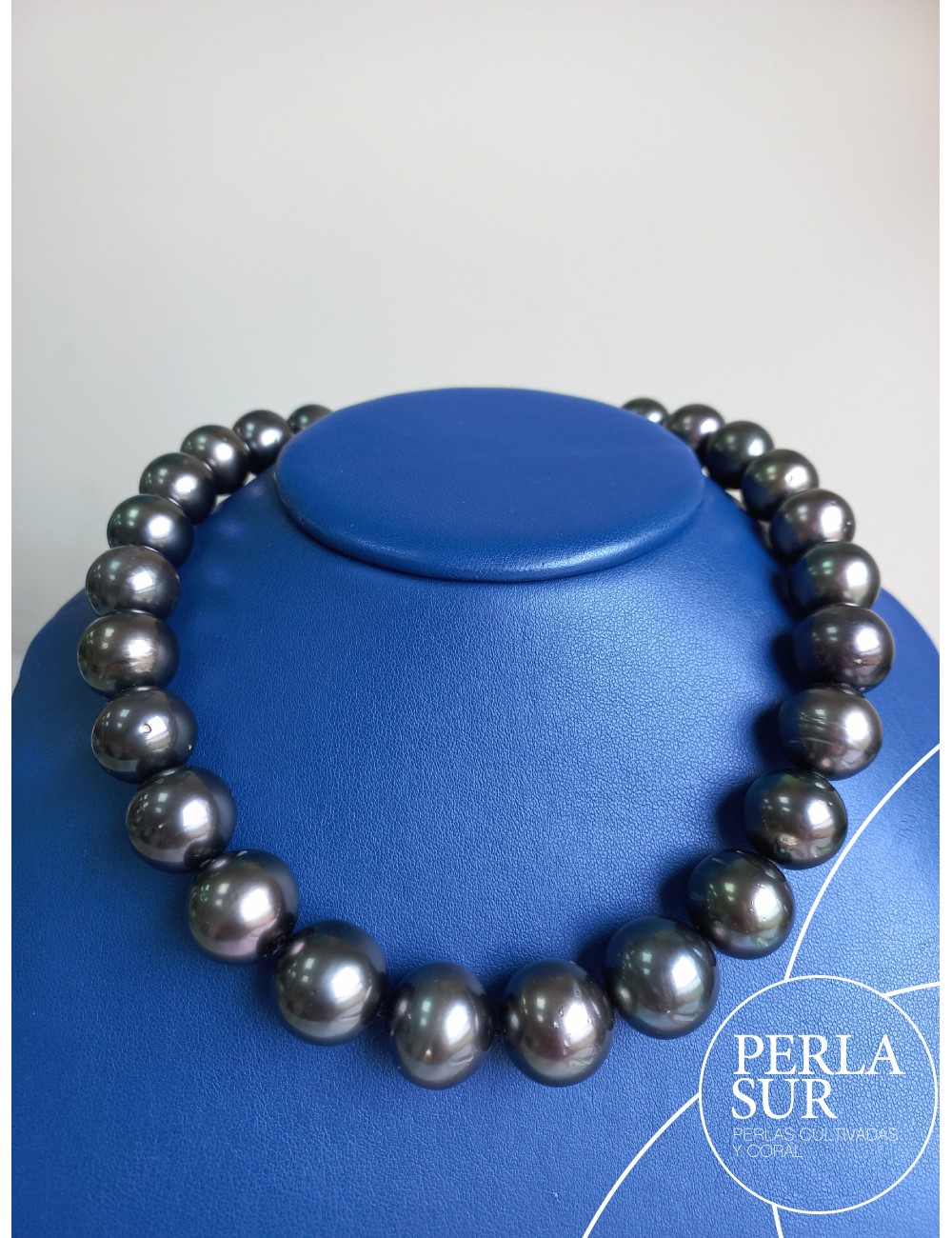 Hilo de Perla Tahití Redonda. Perlas cultivadas en la ostra Pinctada Margaritífera.