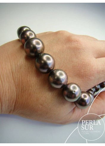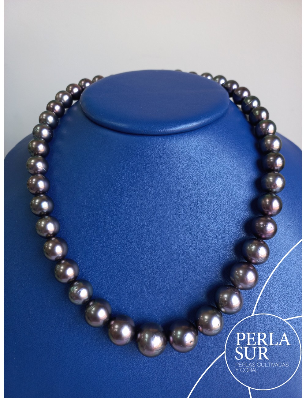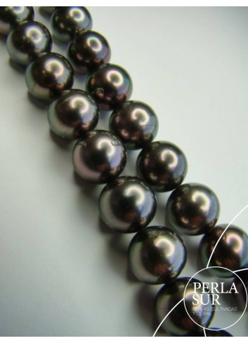 Hilo de Perla Tahití Redonda. Perlas cultivadas en la ostra Pinctada Margaritífera.