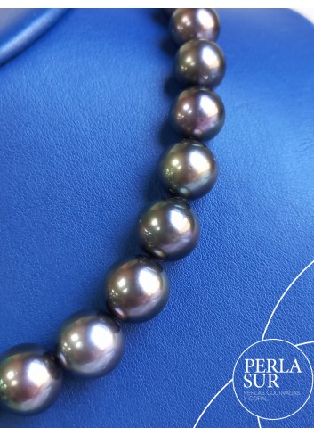 Hilo de Perla Tahití Redonda. Perlas cultivadas en la ostra Pinctada Margaritifera.
