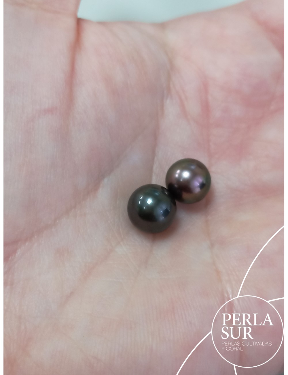 Perla Tahití redonda en varios tonos y sin taladro. Cultivada en la ostra Pinctada Margaritifera.