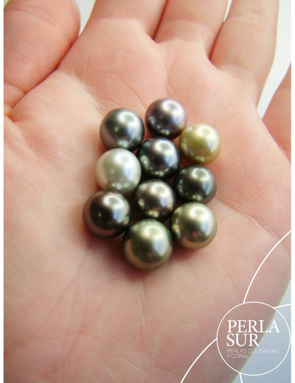Perlas Tahití redondas en varios tonos y sin taladro. Cultivadas en la ostra Pinctada Margaritifera.