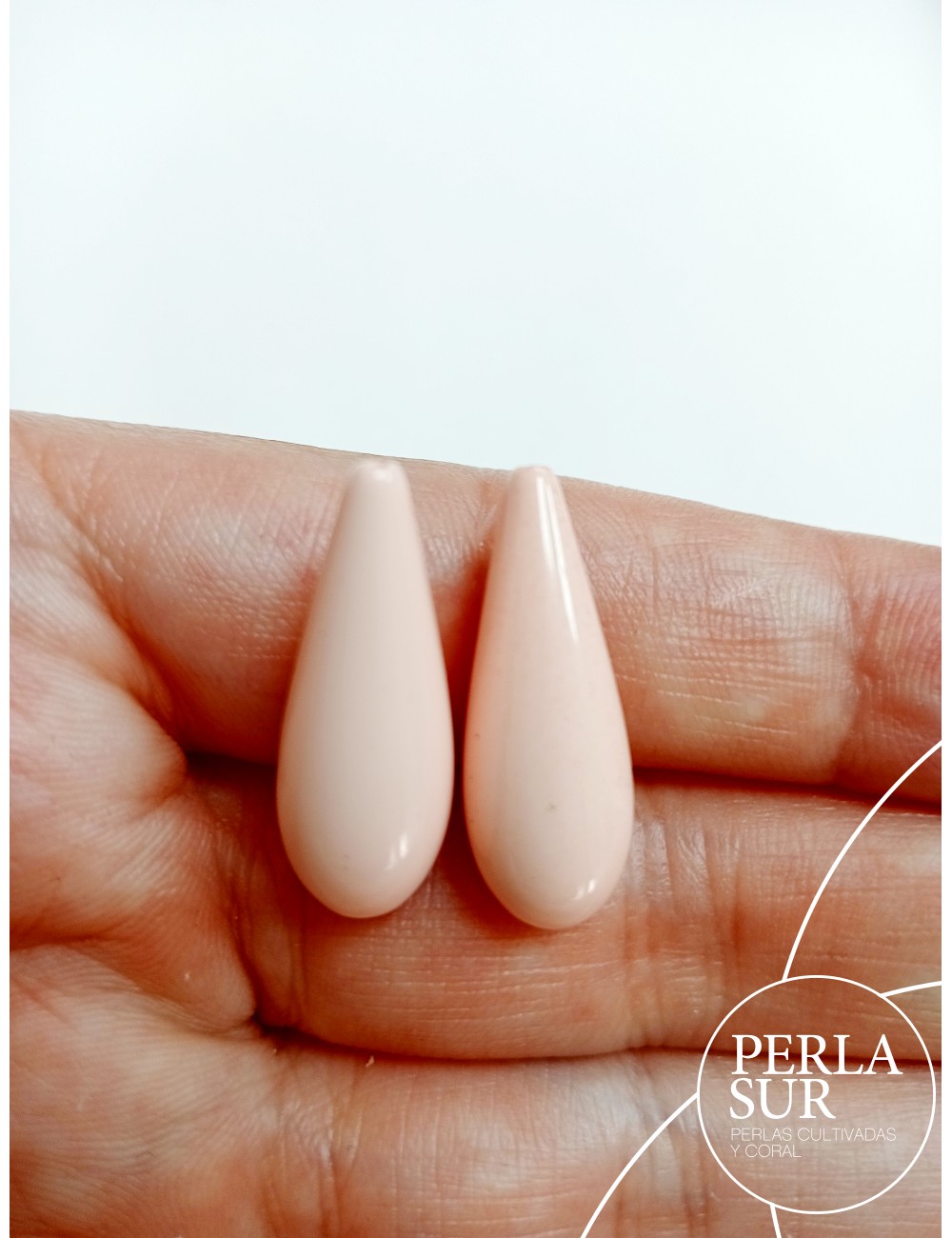 Perillas realizadas en material sintético. Color imitando al coral rosa piel de ángel. Medida 26x10mm. Medio taladro.