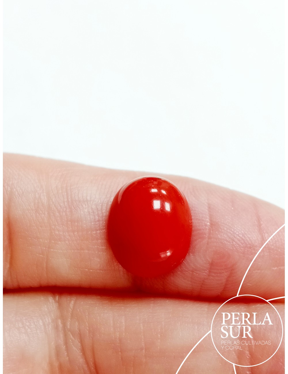 Cabujón oval 10x12mm, coral sintético. Tonalidad roja. Precio por unidad.