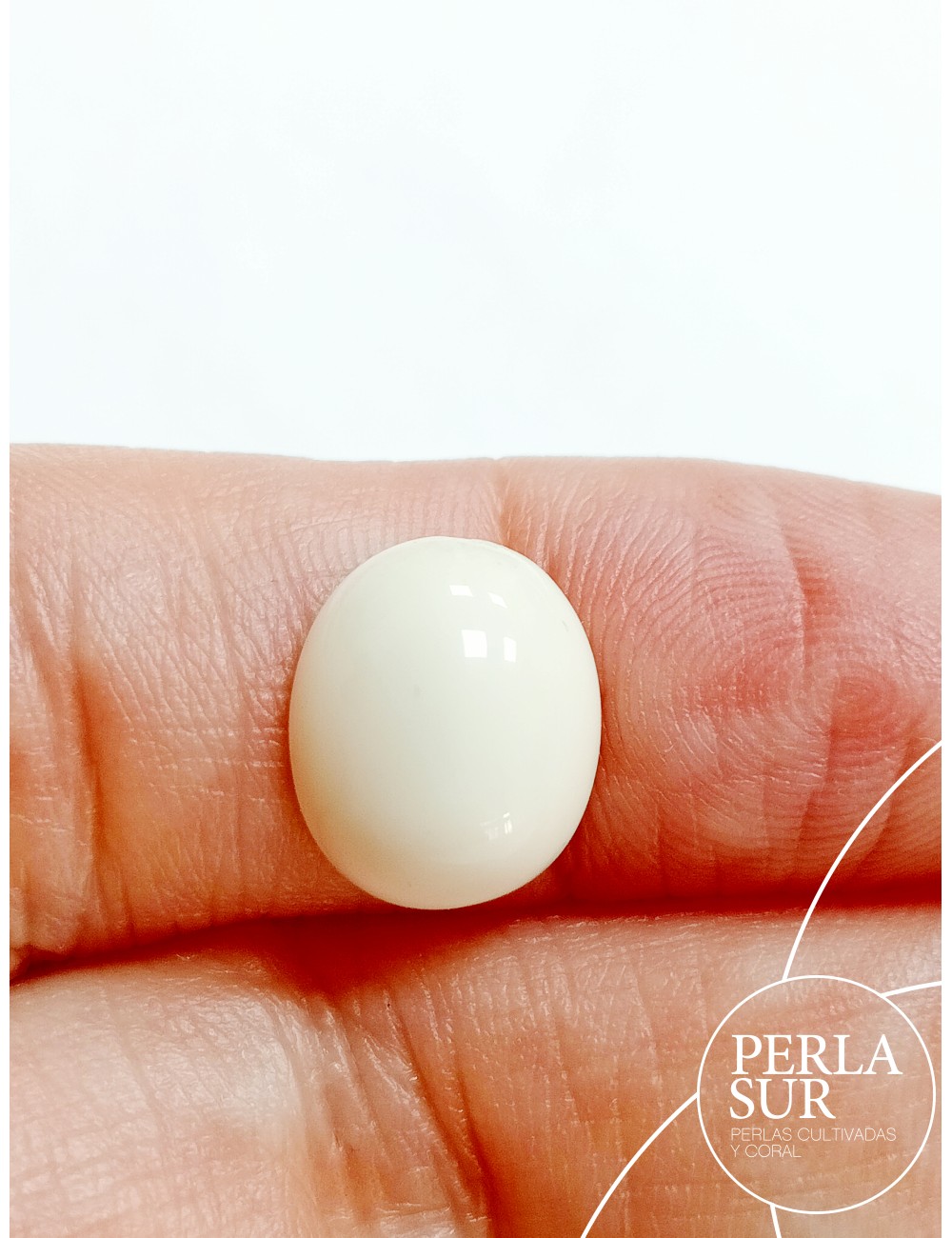 Cabujón oval 10x12mm, coral sintético. Tonalidad beige claro. Precio por unidad.
