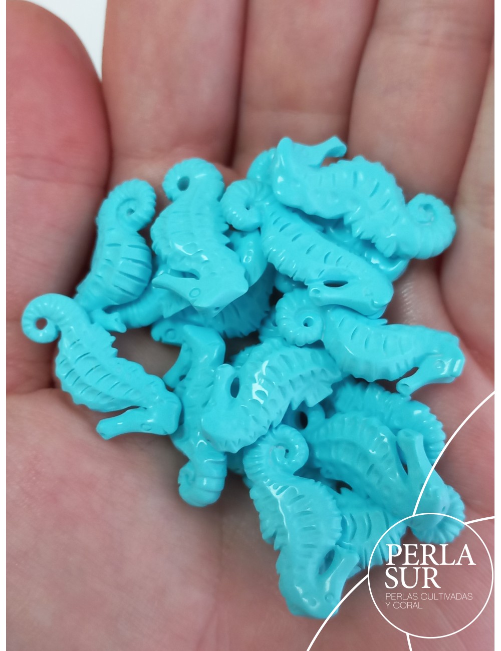 Pieza de Caballito de mar mediano en turquesa reconstituída de alta calidad. El color no se degrada. Precio por unidad.