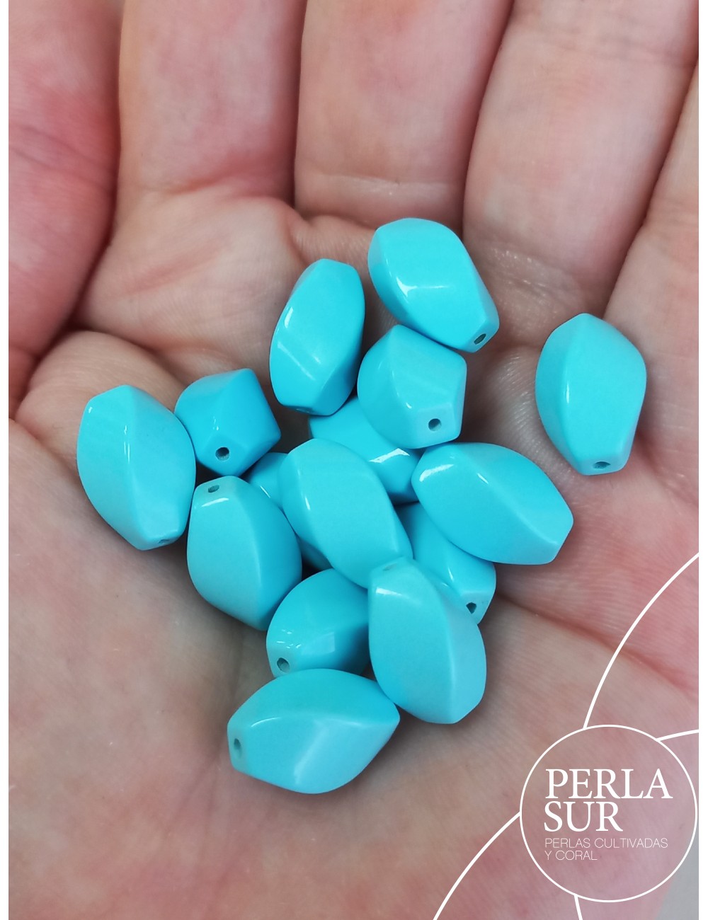 Pieza de tornado con taladro pasado a través hecha de turquesa reconstituída de alta calidad. No se deteriora el color. Precio por unidad.
