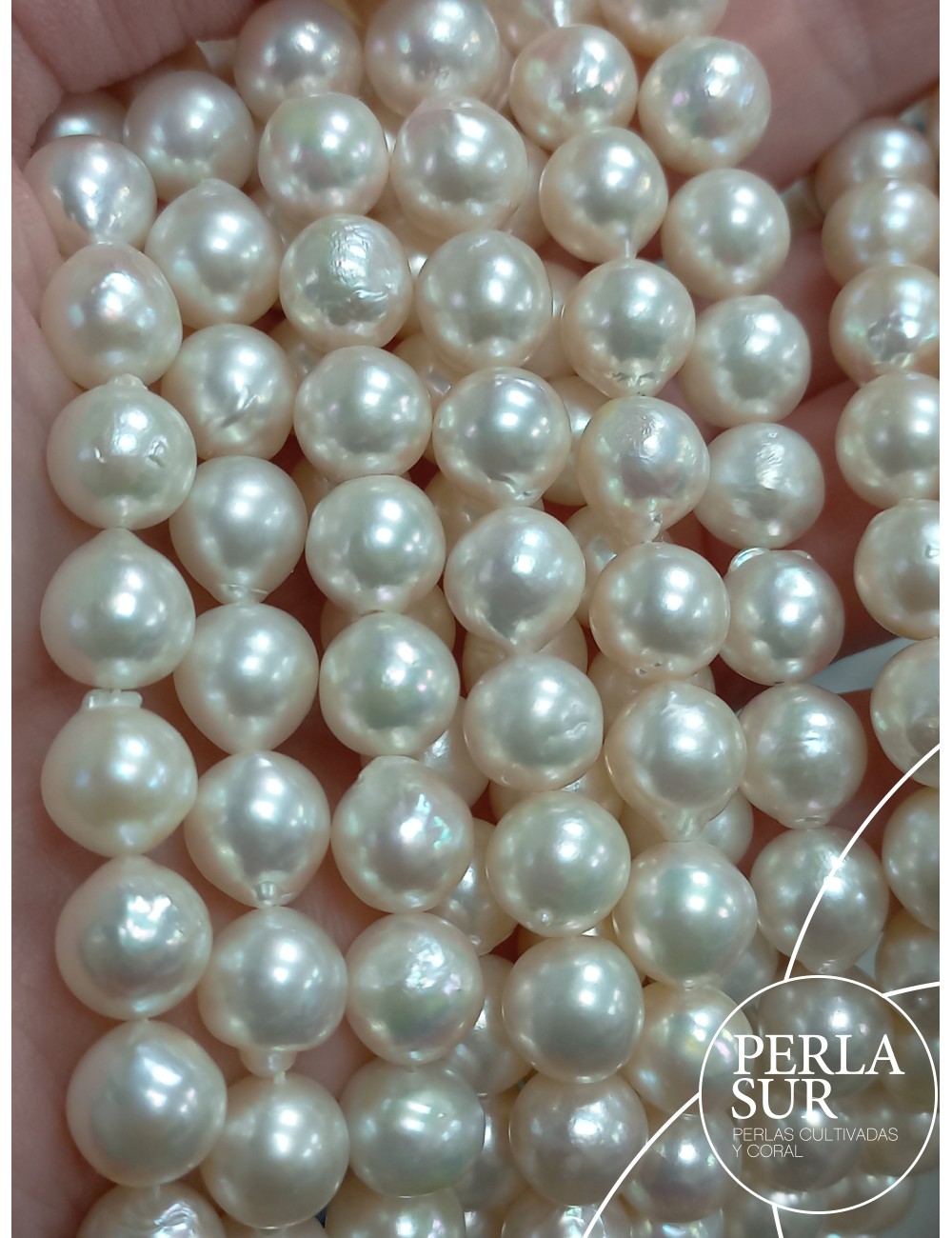 Baroque cultured Akoya pearl strand. Cultured in Pinctada Martensii oyster.