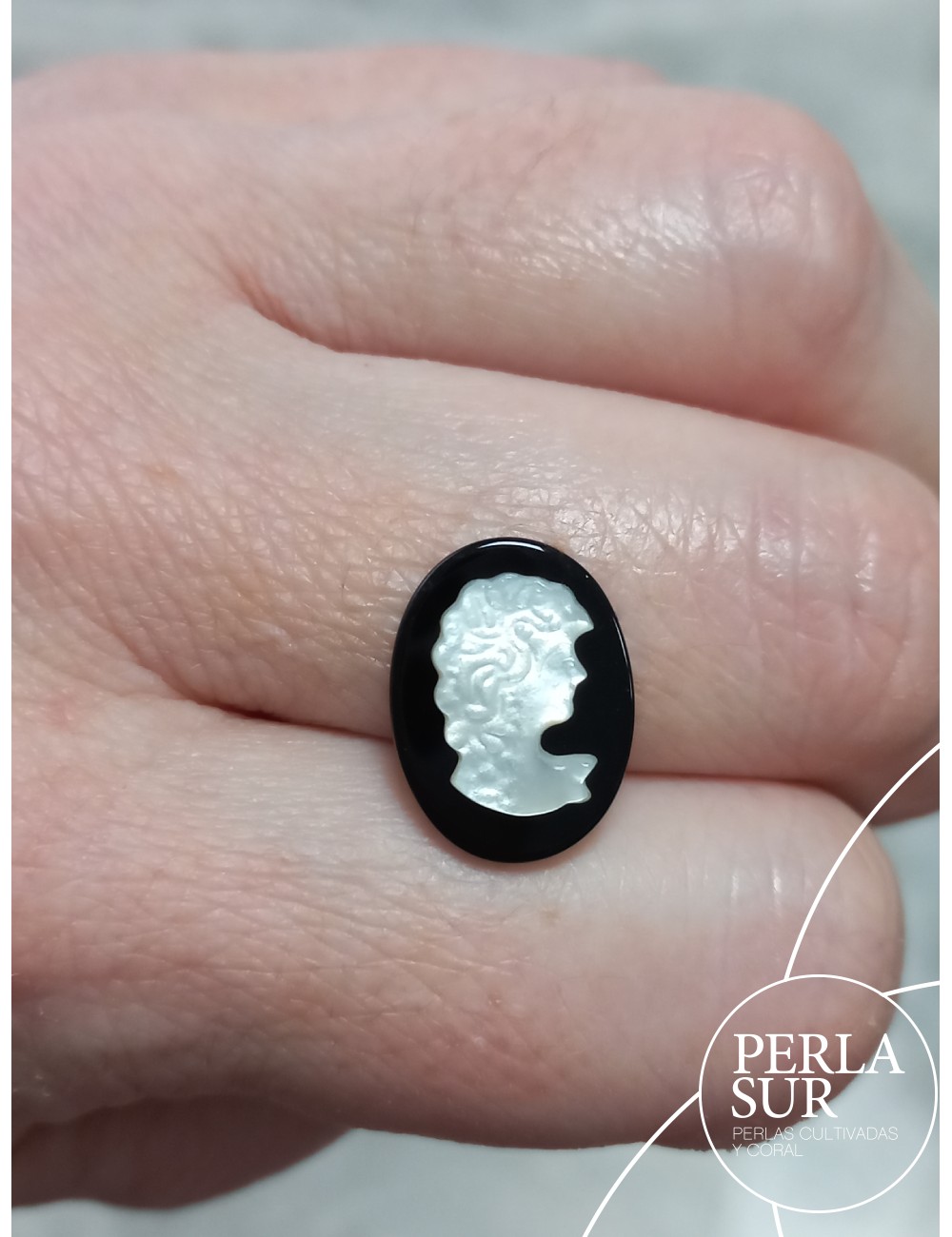 Camafeo Madreperla Australiana y Onix 16x12mm. Sueltos o en pareja con caras opuestas. Concha de ostra tallada a mano. Diseños variados.