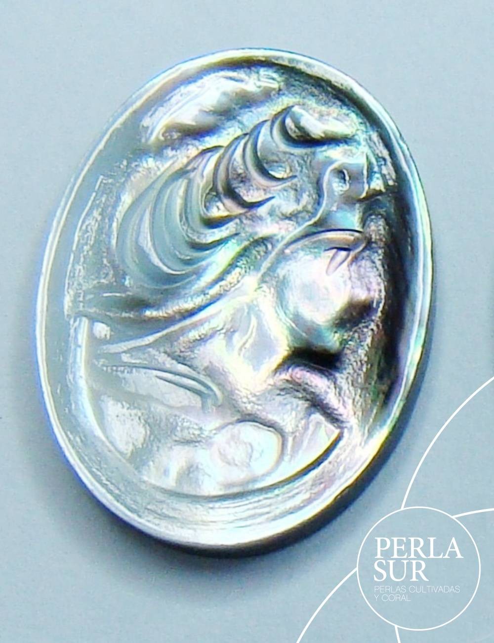Camafeo Madreperla Tahití 16x12mm. Sueltos o en pareja con caras opuestas. Concha de ostra tallada a mano. Diseños variados.