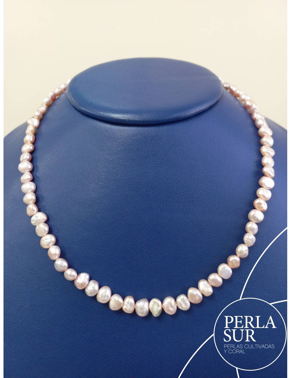Round FW Nat. Colour 6mm with Goldplated Silver Clasp Natural pink colour freswater 6-7mm round pearls. Length 40-42cm. Goldplated 18k silver spring ring clasp.