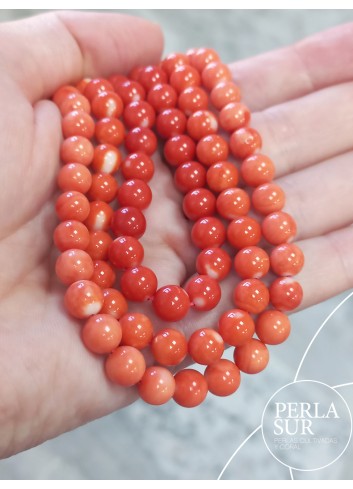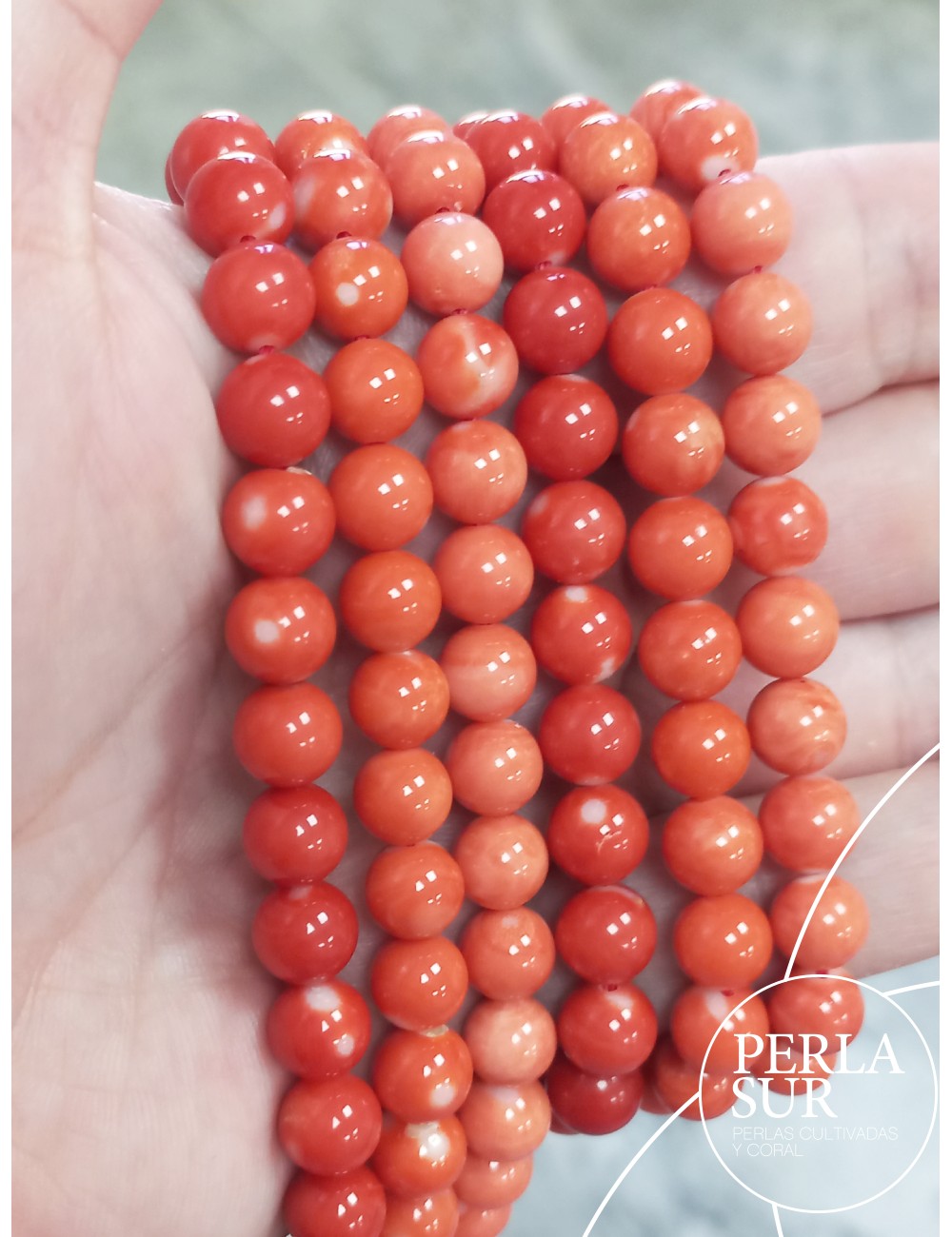Hand carved Japanese Coral/Momo strands made of beads (Corallium Elatius).