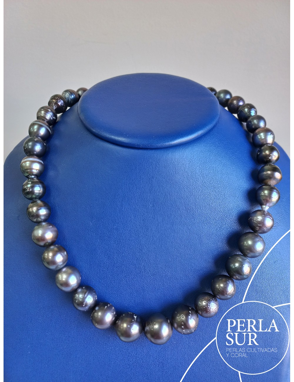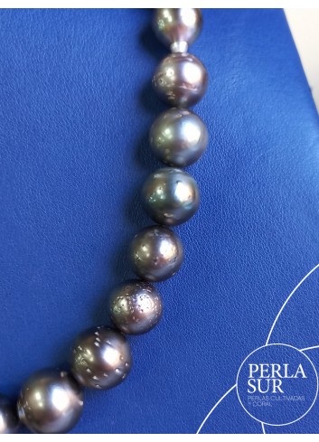 Collar de perla Tahití redonda. 33 piezas desde 10,9 a 16,2mm. Pesa 494,8k. Mide 42 cm. Cierre no incluido.