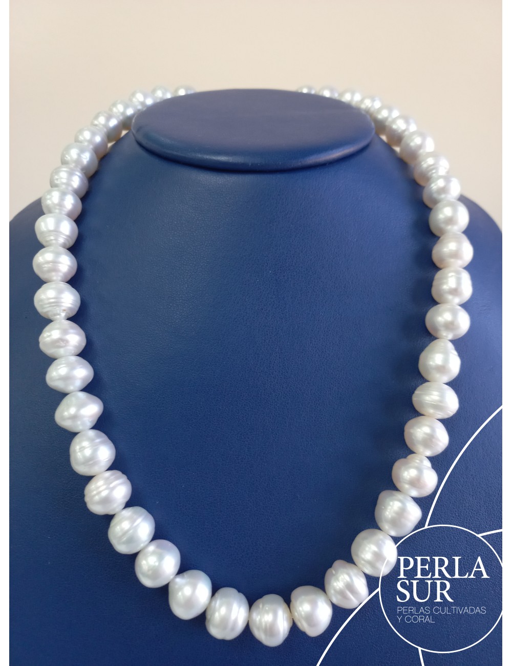 The 45 pearls are 11 to 12mm diameter. 50cm length.