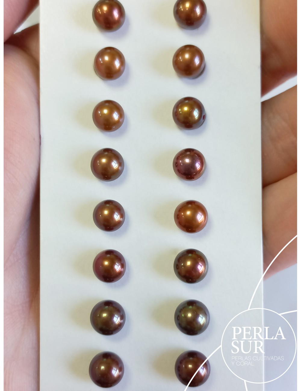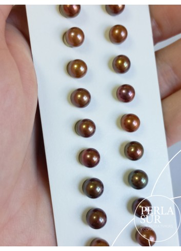 Round halfdrilled pair of dyed color 6-6'5mm chocolate. Freshwater cultured pearls.