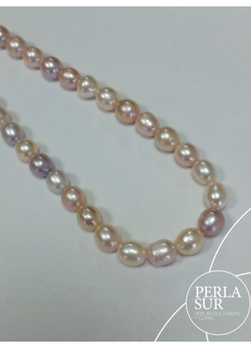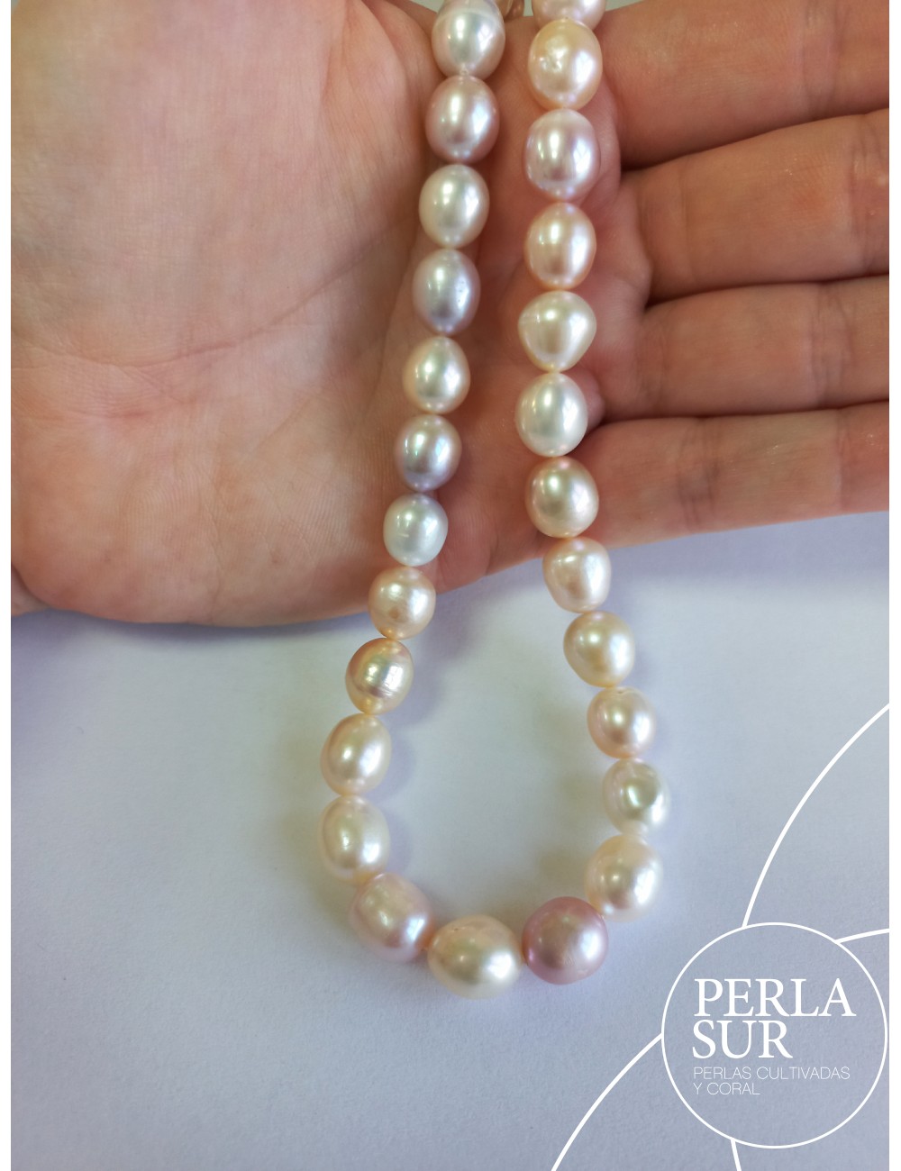 Perlas cultivadas de agua dulce, color peacock (pavo real). Color tratado, no natural.