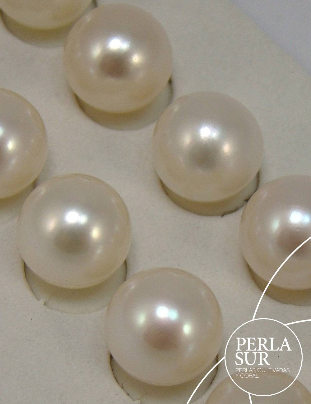 Pair 7'5-8mm 1/2drilled White pearls Round halfdrilled pair 7´5-8mm white. Freshwater cultured pearls. Price per pair.