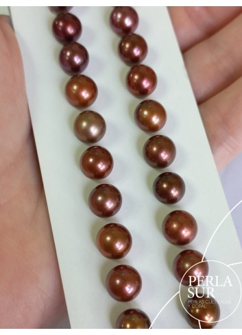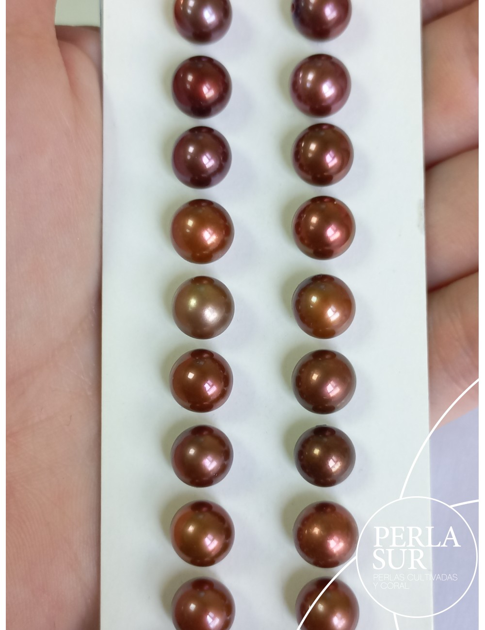 Round halfdrilled pair of dyed color 8-8´5mm chocolate. Freshwater cultured pearls. Price per pair.