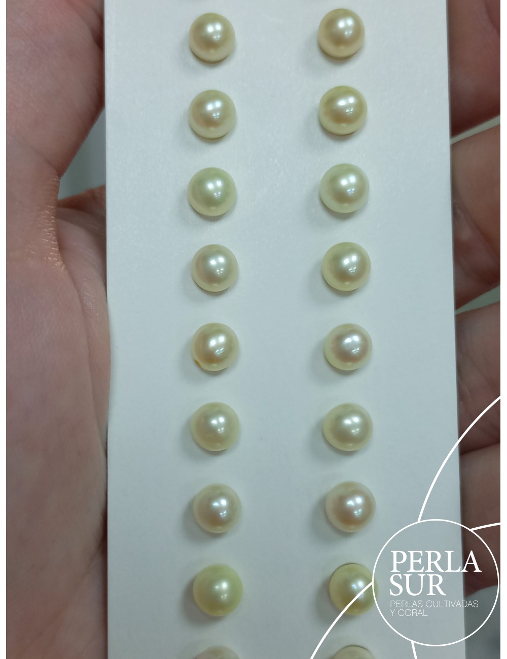 Pair 8´5-9mm Half drilled White A Round halfdrilled pair 8´5-9mm white. Freshwater cultured pearls. Price per pair.