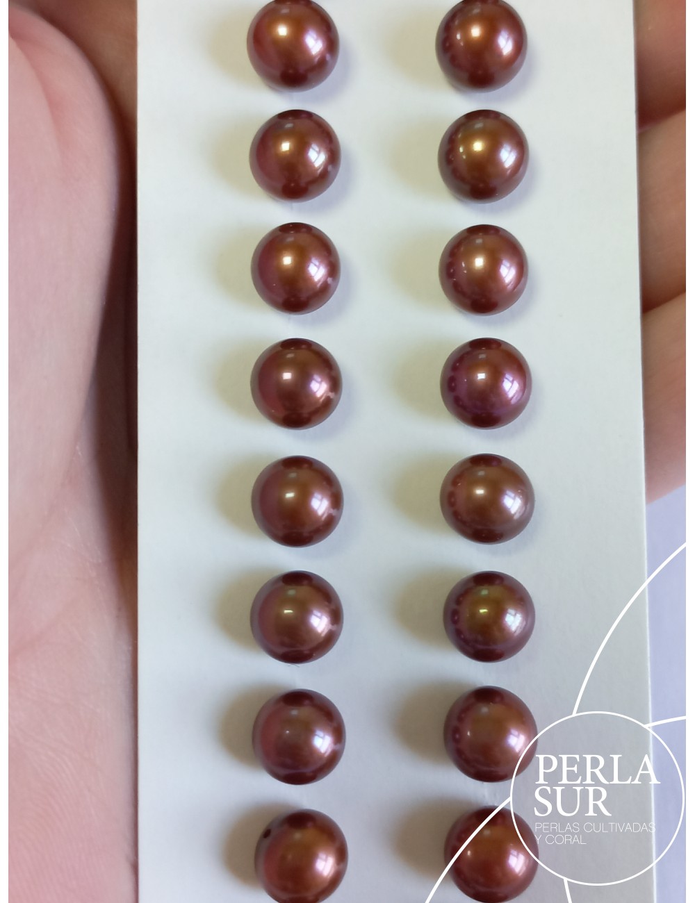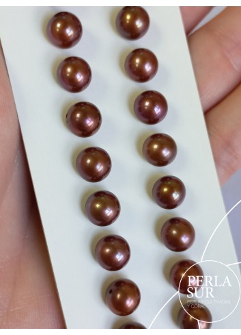 Round halfdrilled pair of dyed color 7´5-8mm chocolate. Freshwater cultured pearls. Price per pair.