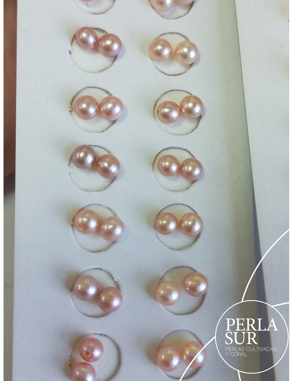 Round halfdrilled pair of natural color 4´5-5mm lilac. Freshwater cultured pearls. Price per pair.