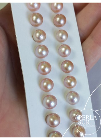 Round halfdrilled pair of natural color 7´5-8mm salmon and lilac. Freshwater cultured pearls. Price per pair.