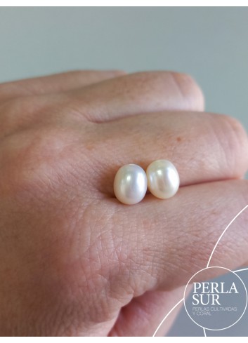 Pair 5-5'5mm Button Half drilled White Pair Button 5-5´5mm halfdrilled freshwater cultured pearls. Natural White Colour. Price per pair.