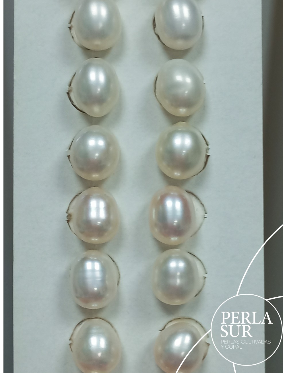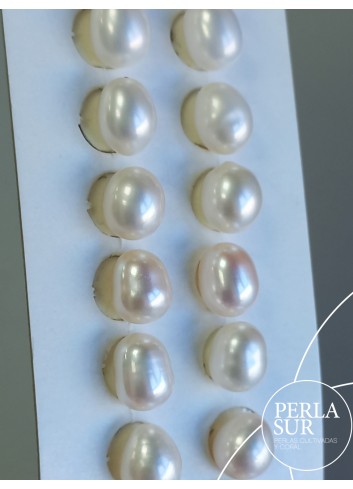 Pareja Perla Botón 10-10´5mm tono azulado. Tiene medio taladro en la parte posterior.