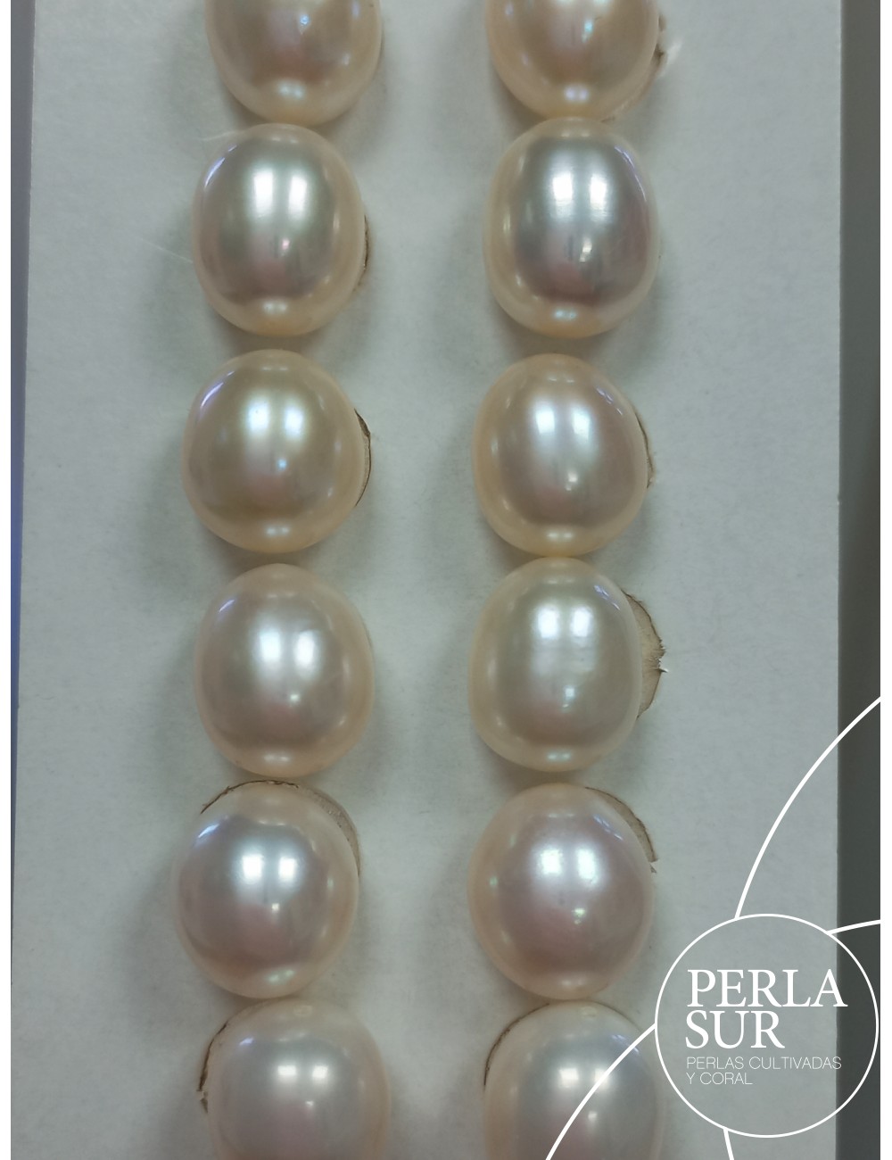 -Pair Drop 9'75x10mm 1/2drilled White Pair Drop 9'75x10mm halfdrilled freshwater cultured pearls. Natural Colour. Price per pair.