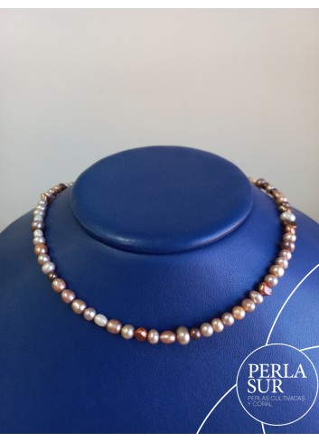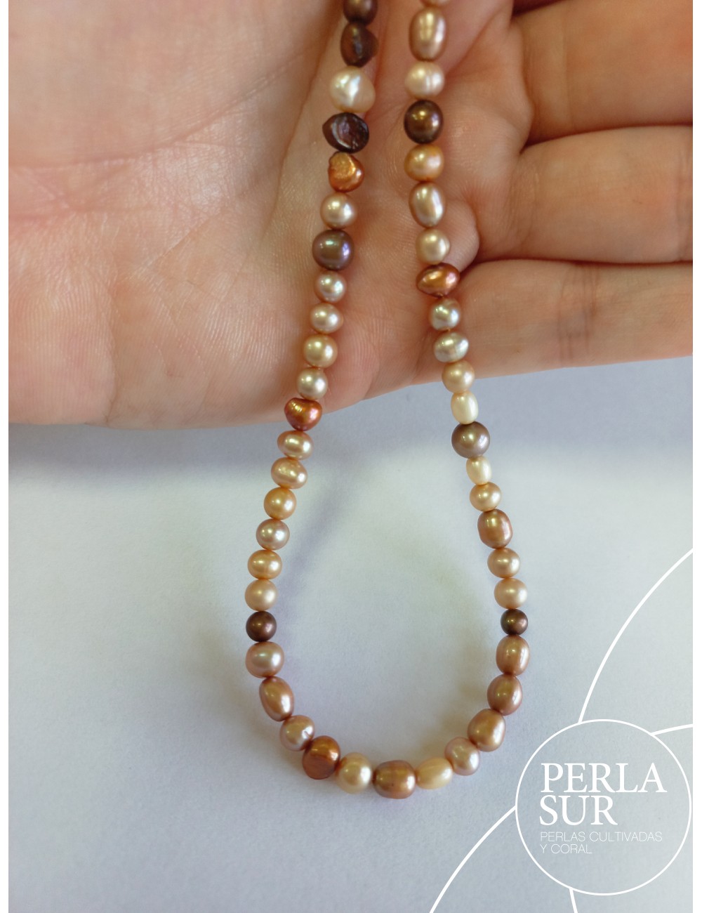 Pair 8-8´5mm Half drilled Natural Colour Round halfdrilled pair of natural color 8-8´5mm salmon and lilac. Freshwater cultured pearls. Price per pair.