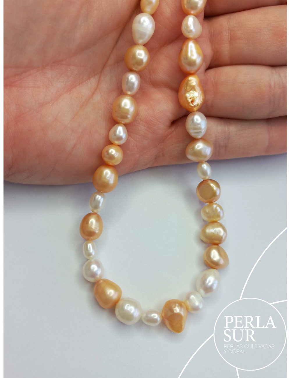 Baroque 9-10mm Natural Lilac strand Baroque Pearl Strand 6-7mm natural color salmon. Freshwater cultured pearls. Length 40cm.