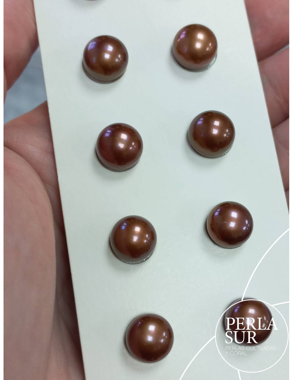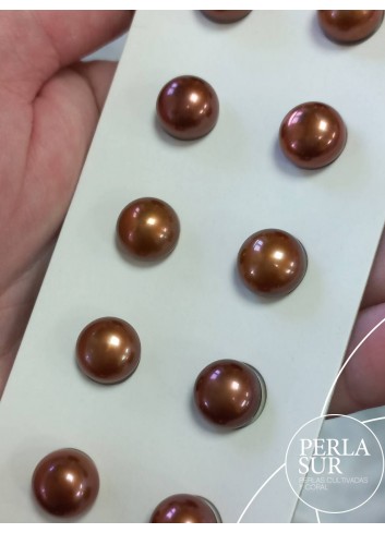 Pair Button 10mm halfdrilled freshwater cultured pearls. Chocolate dyed colour. Price per pair.