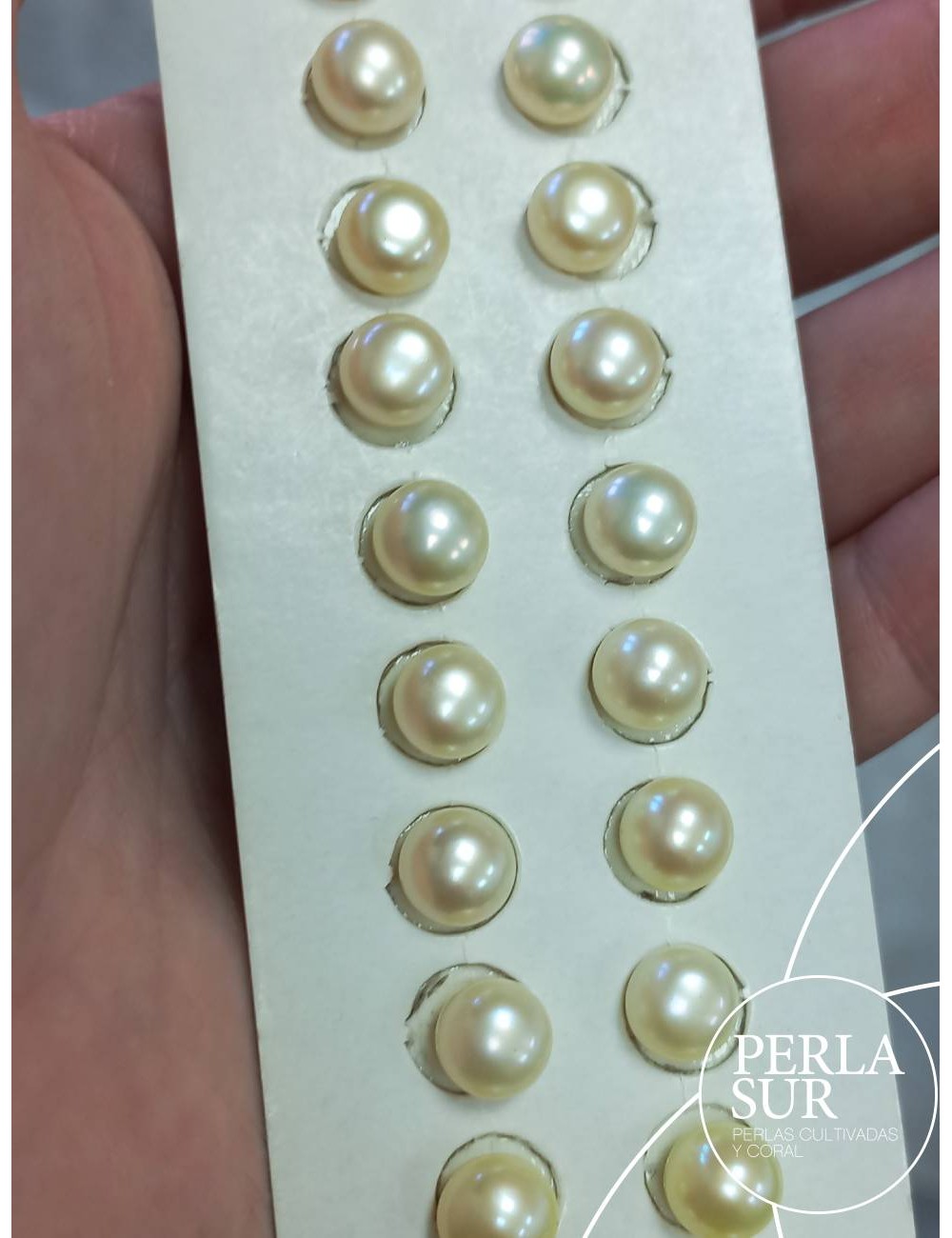 Pair Button 7´5-8mm halfdrilled freshwater cultured pearls. Golden dyed colour. Price per pair.
