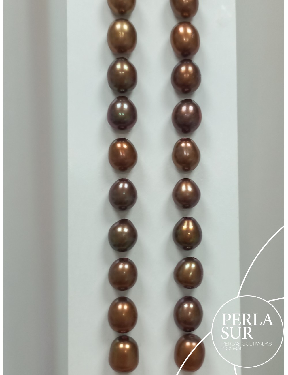 Pair Drop 7-7´5mm halfdrilled freshwater cultured pearls. Chocolate dyed Colour. Price per pair.