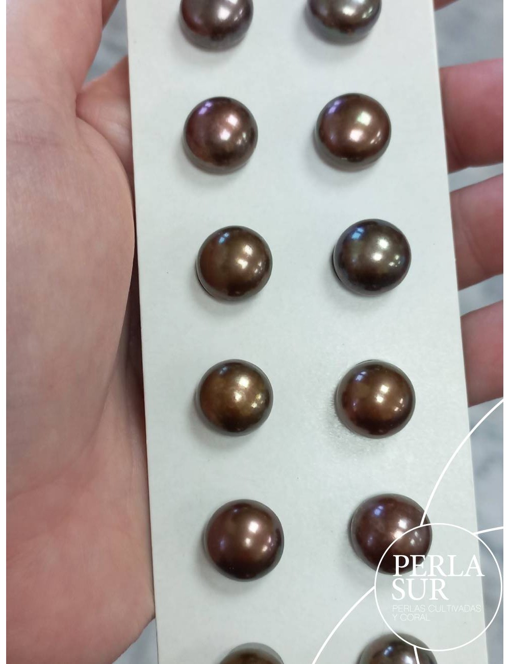 Pareja perla 8'5-9mm Botón 1/2t blanca Pareja Perla Botón Blanca 8'5-9mm medio taladro. Perla cultivada agua dulce con forma de botón. Tienen un medio taladro en la base. Con una presión en oro o plata pueden hacerse pendientes. Precio por pareja.