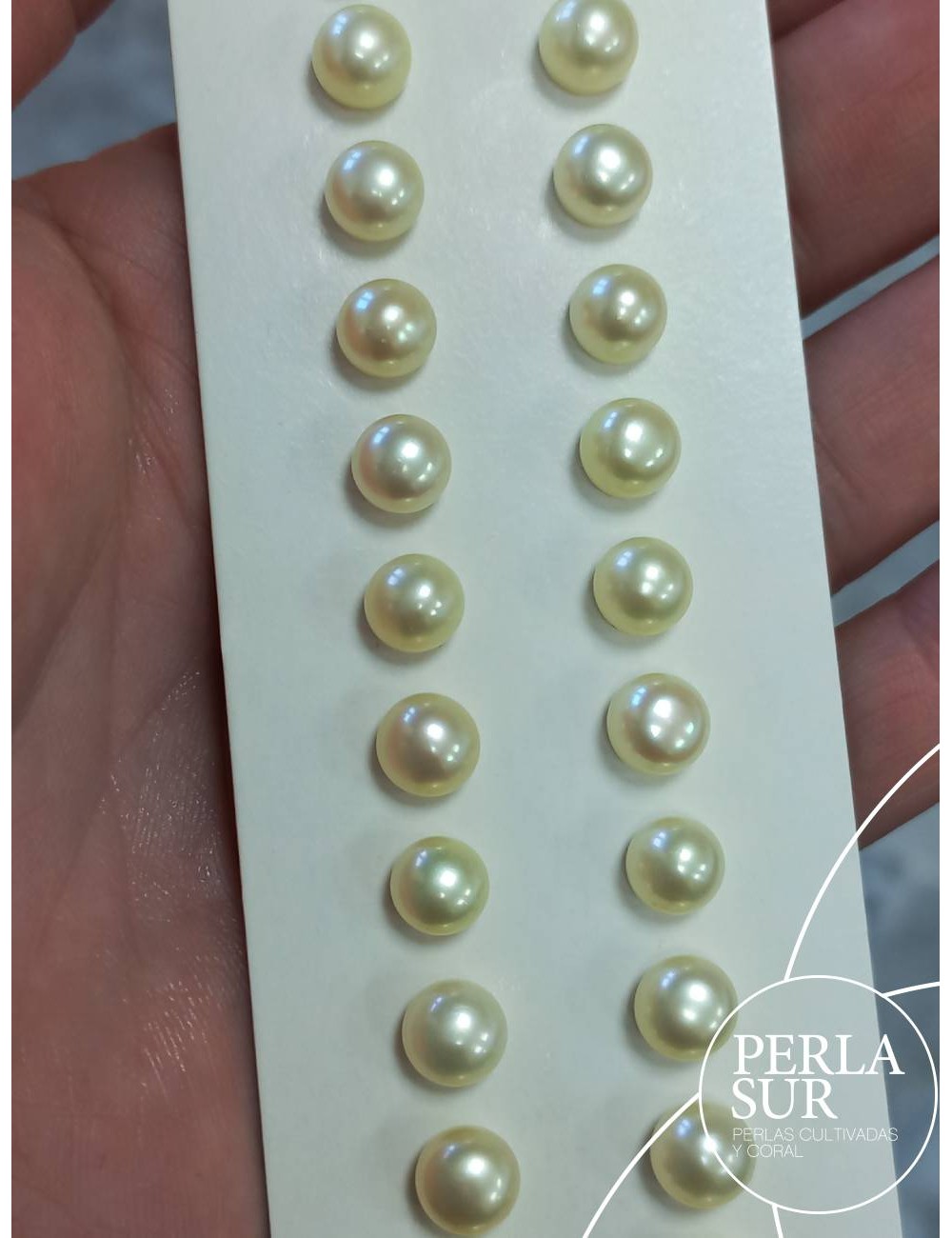 Pair Button 6´5-7mm halfdrilled freshwater cultured pearls. Golden dyed colour. Price per pair.