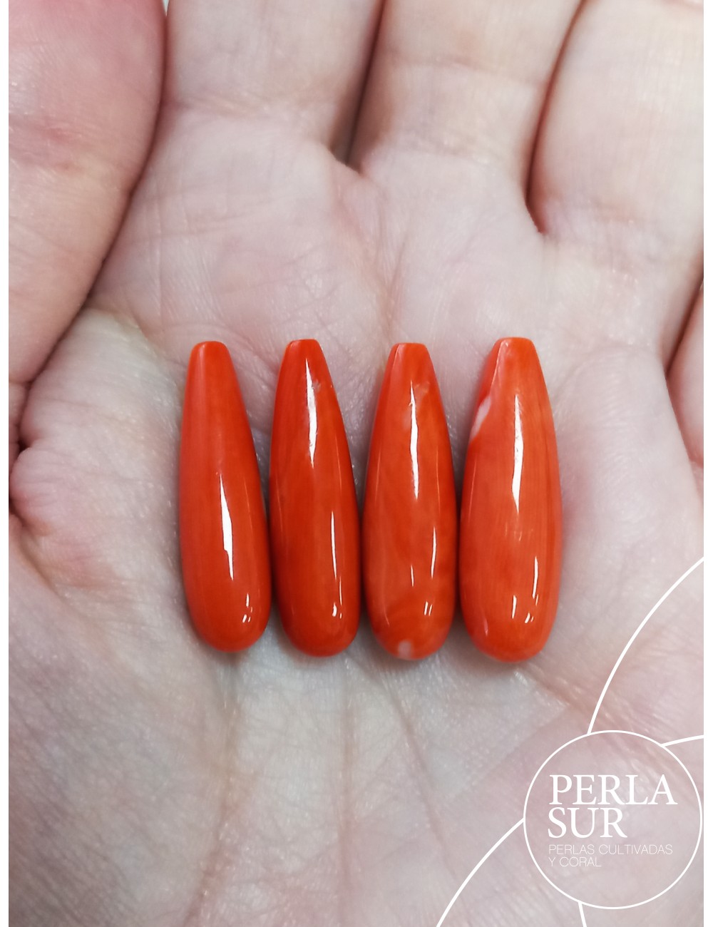 782521203-Pair 8x25mm 1/2drilled drops Japanese Coral