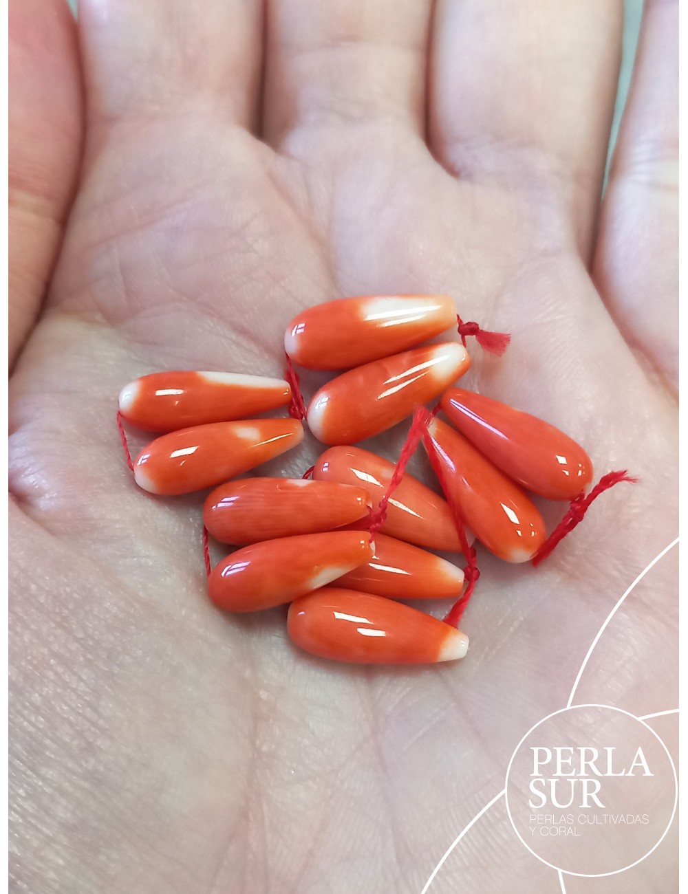 Pair of hand carved Japanese Coral drops (Corallium Elatius).