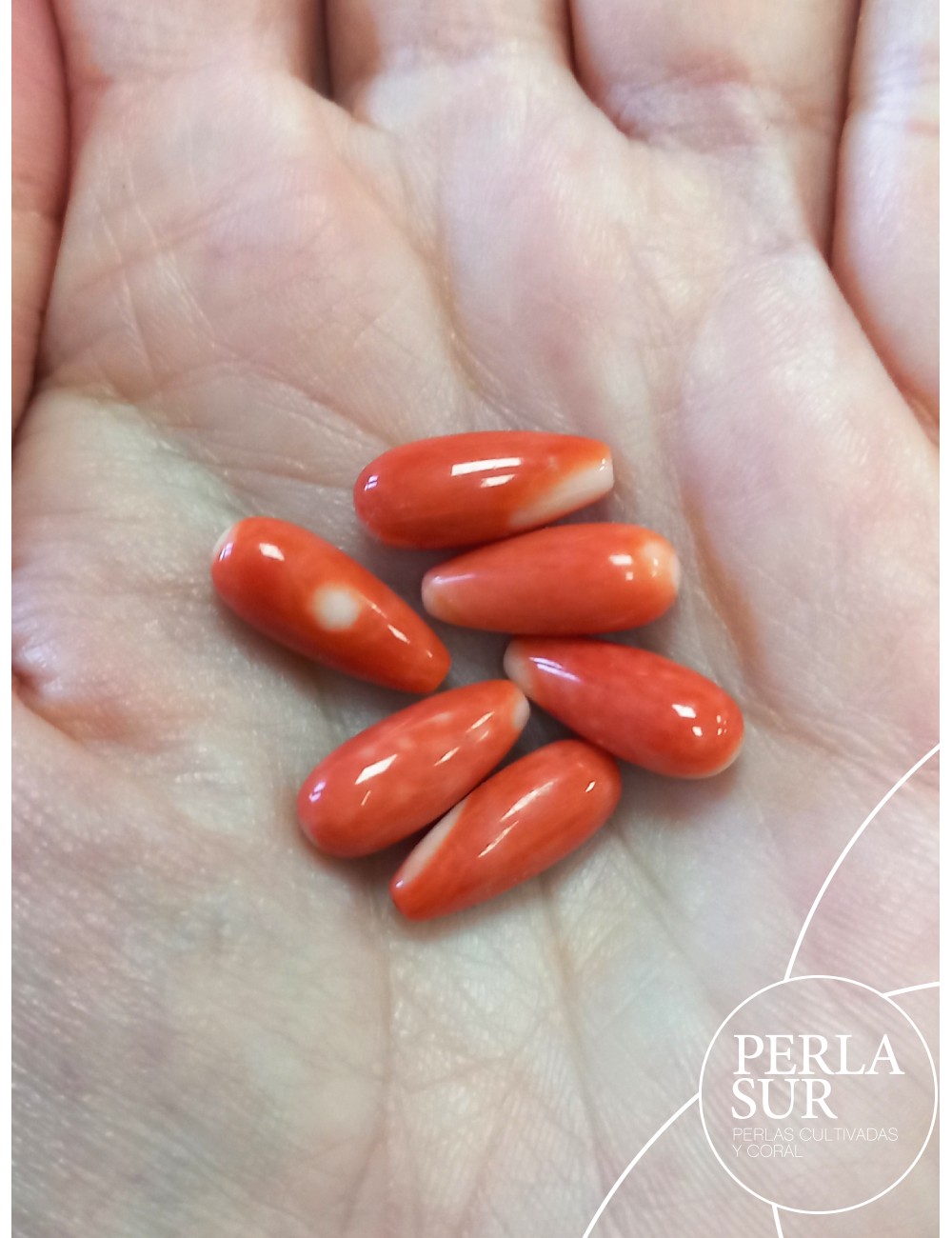 761520603-Pair 6x15mm 1/2drilled drops Japanese Coral