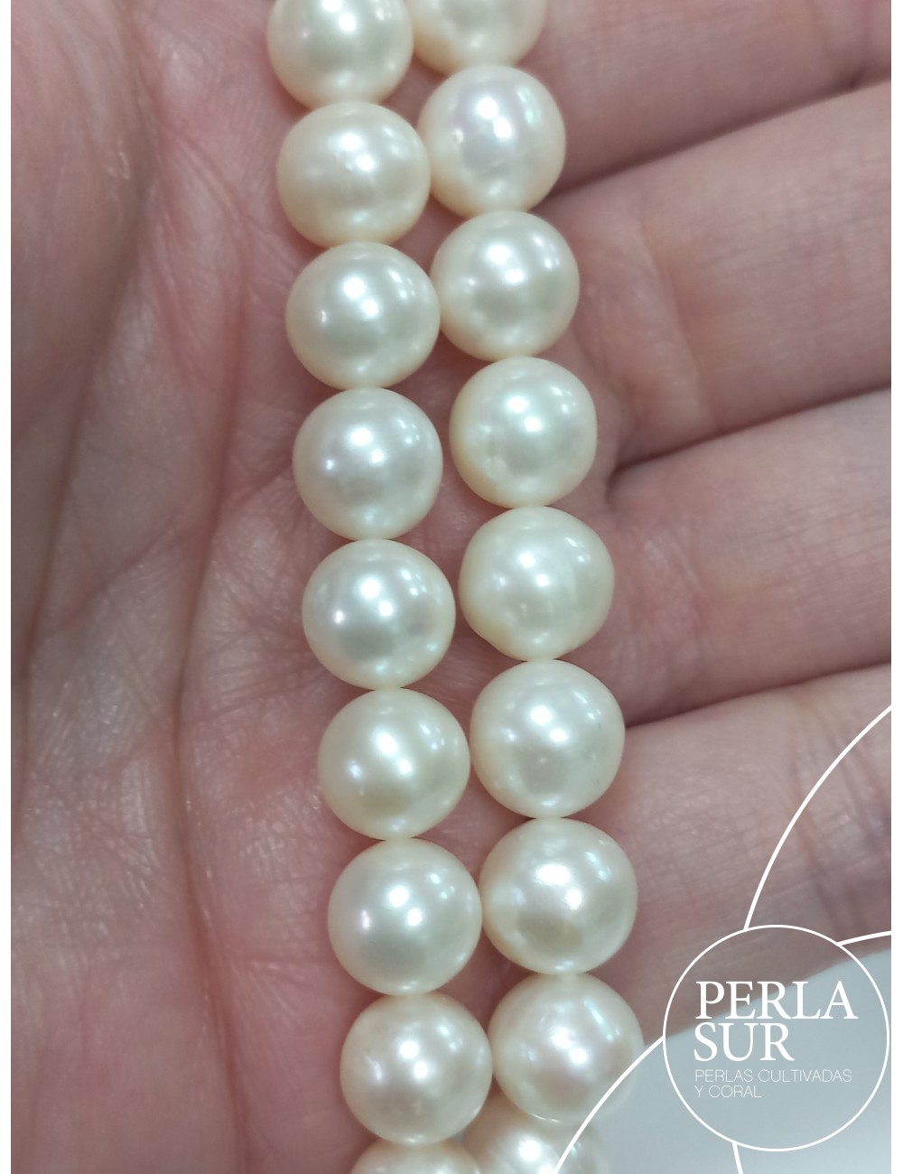 The pearls are 8'5-9mm diameter. Total length 40cm.