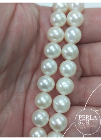 Semiround cultured Akoya pearl strand. Cultured in Pinctada Martensii oyster.