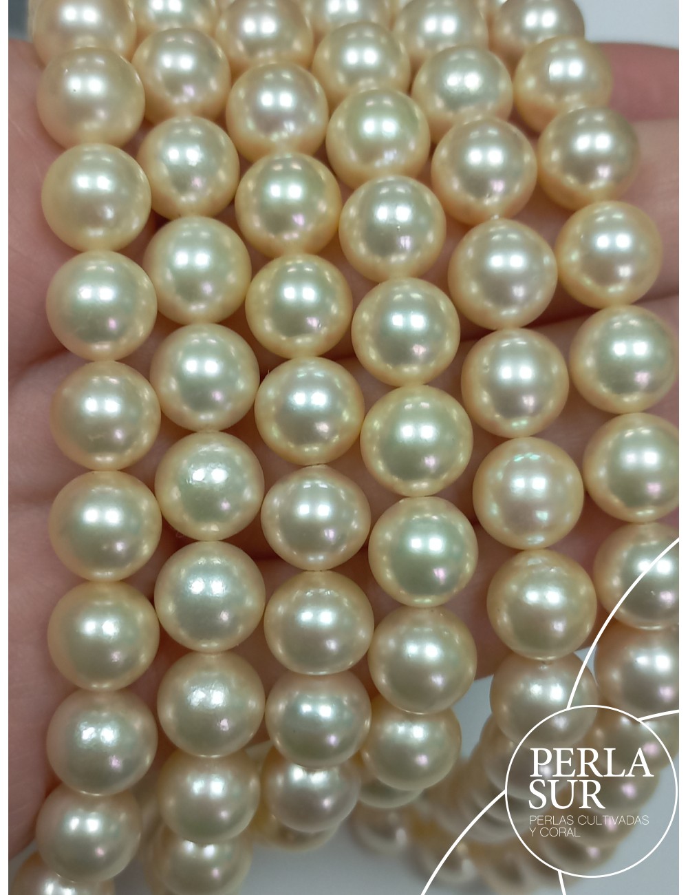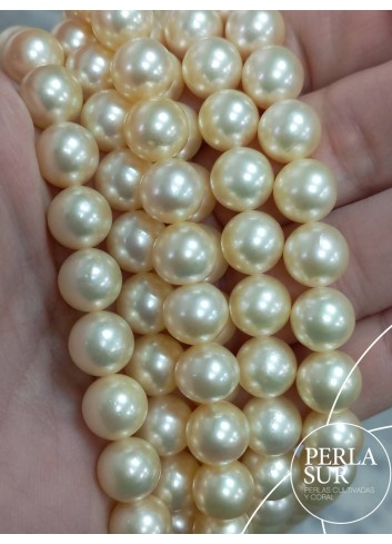 Round Golden cultured Akoya pearl strand. Cultured in Pinctada Martensii oyster.
