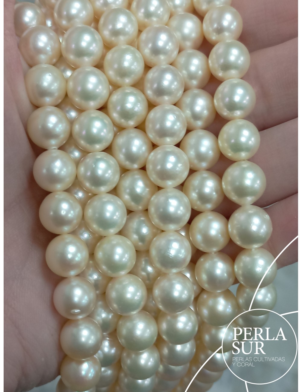 The pearls are 9-9'5mm diameter. Total length 40cm.